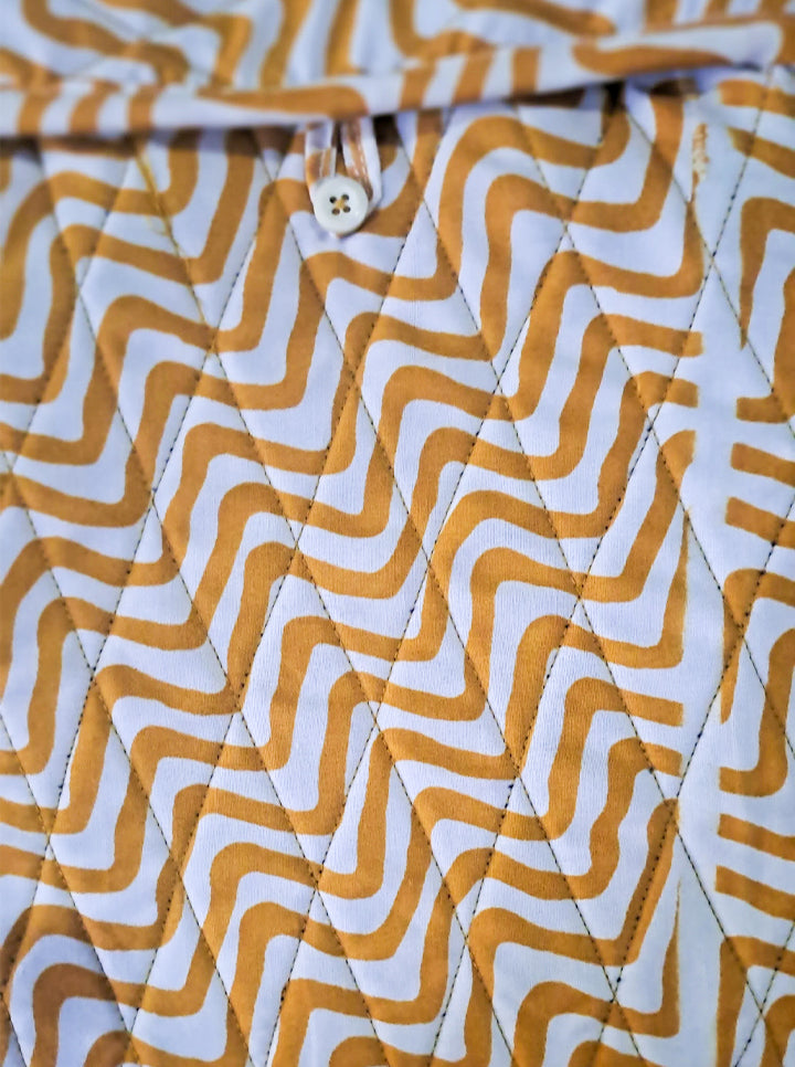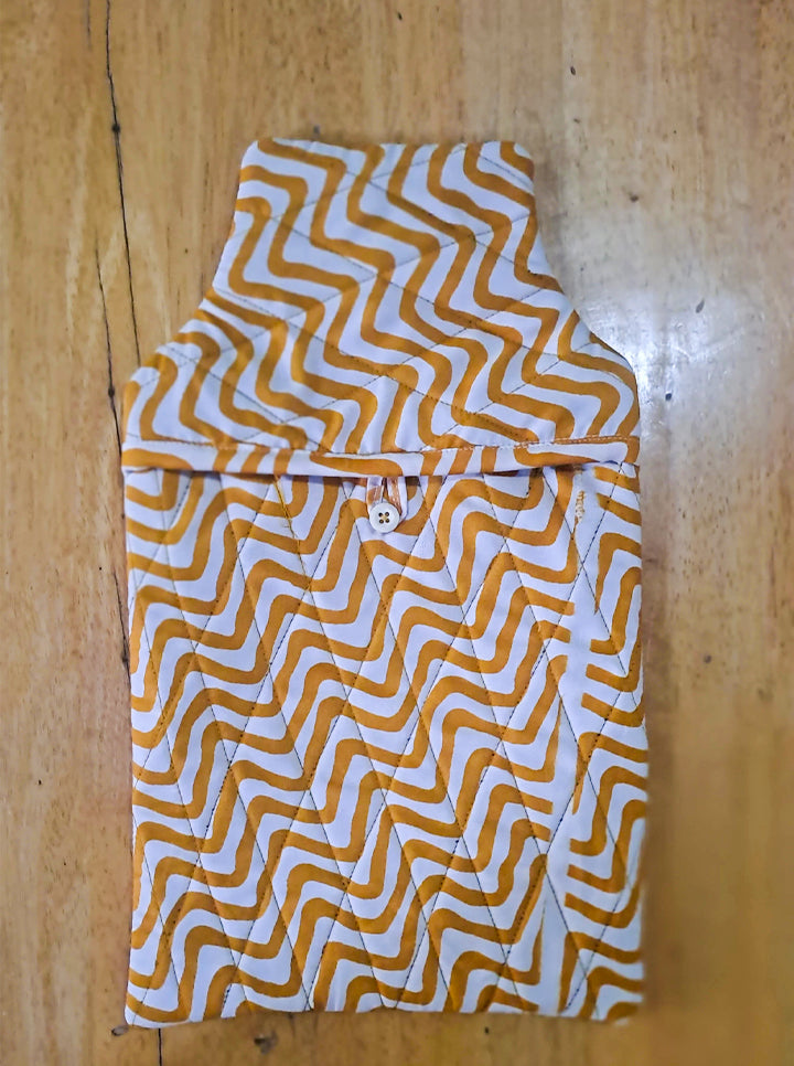 Keep your hot water bottle warm and cozy with this stylish quilted cotton cover. Designed with a soft, breathable fabric and a beautiful yellow zigzag pattern, it provides insulation to maintain heat while protecting your skin from direct contact with hot surfaces. The durable stitching ensures long-lasting use, making it a perfect companion for cold nights, soothing aches, and relaxation. Ideal for home use, gifting, or travel.