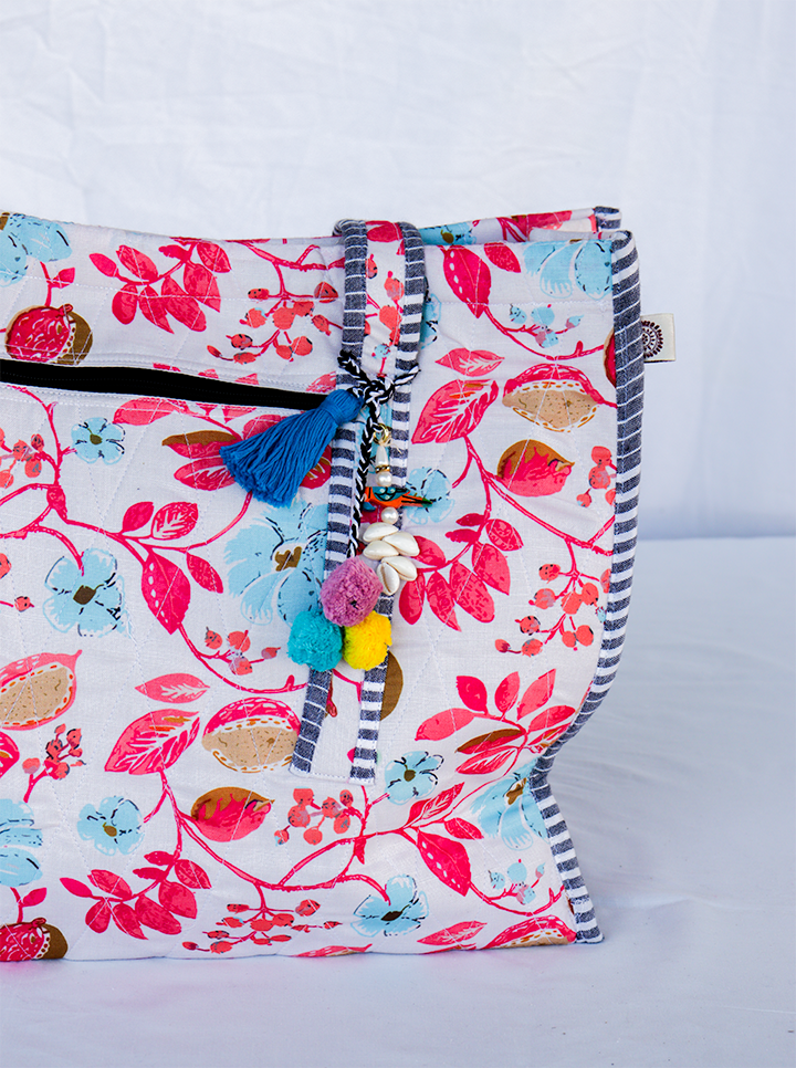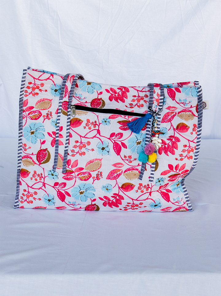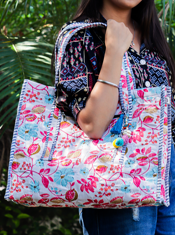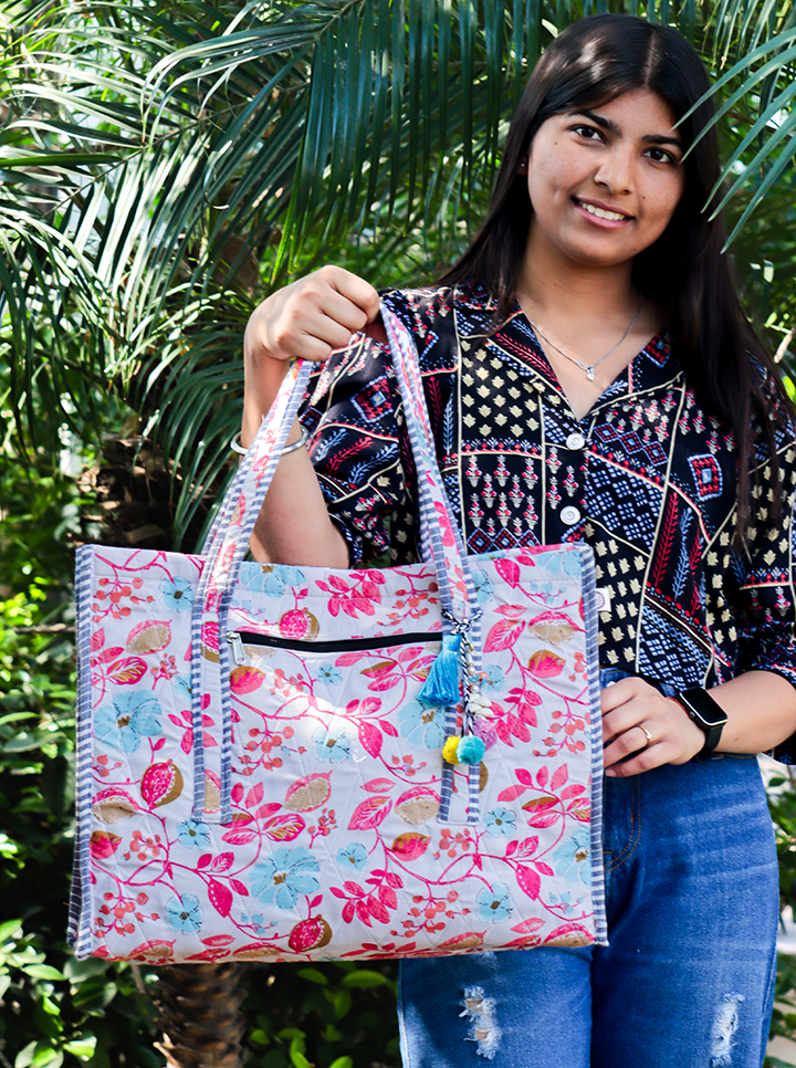 Cotton Washable Tote Bag (Pink+Blue Floral)