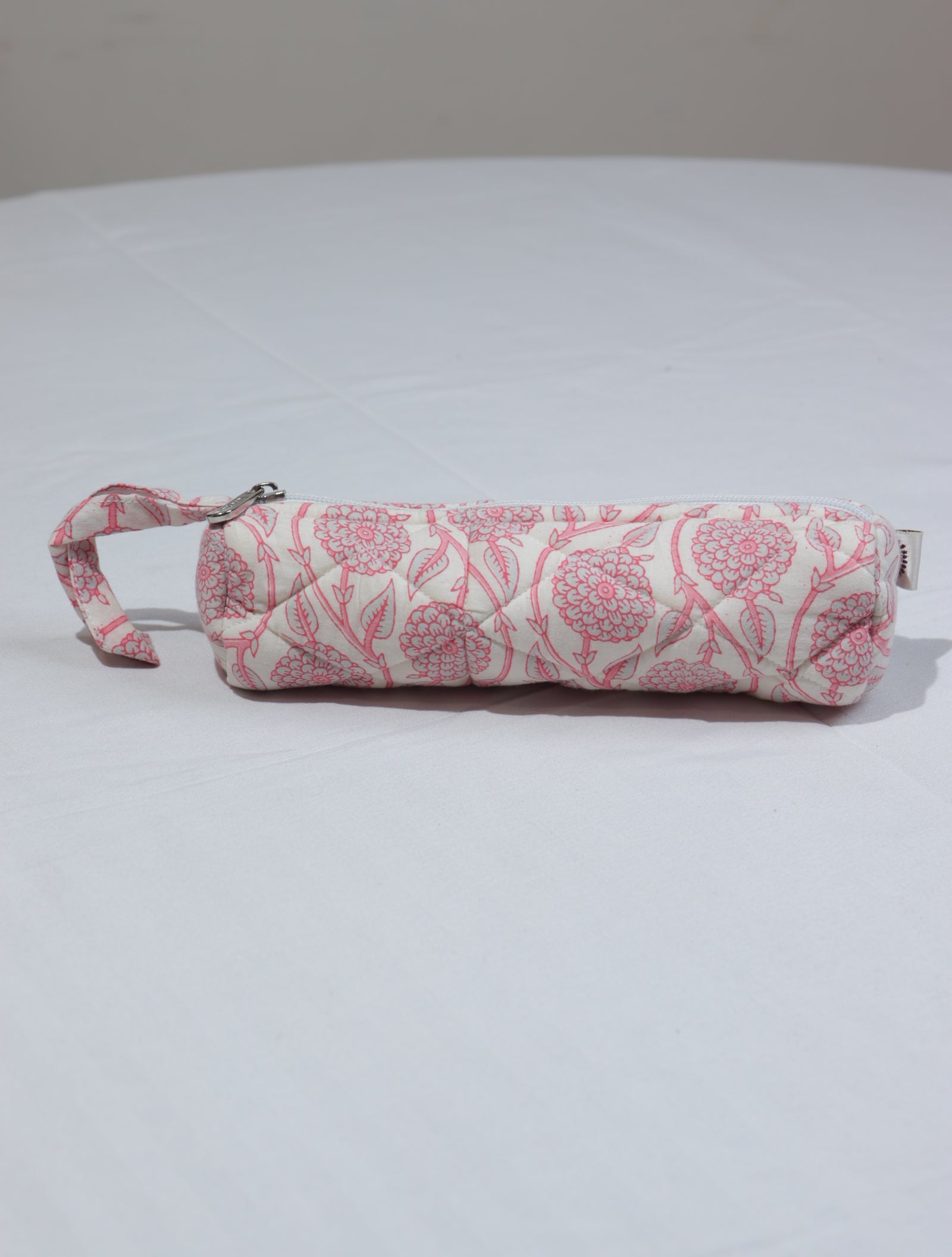 Floral Blockprint Quilted Pencil Pouch – Pink Petals