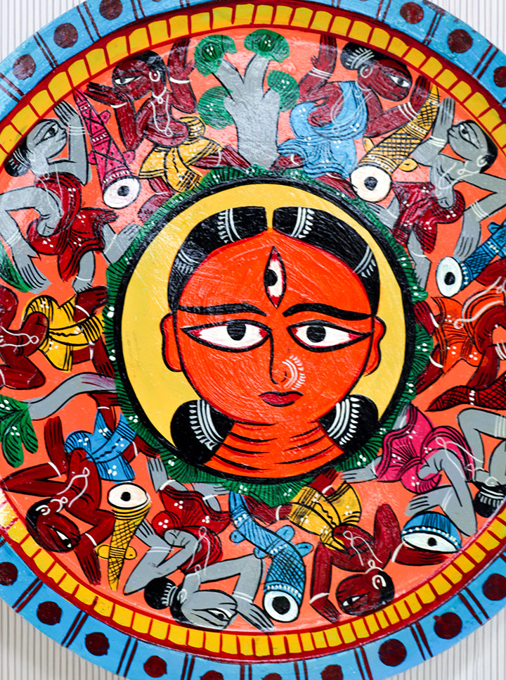 This exquisite hand-painted decorative wall plate with Patachitra painting is a stunning piece of art, designed to enhance the aesthetic appeal of your living space. Perfect for those who appreciate unique, handmade décor.