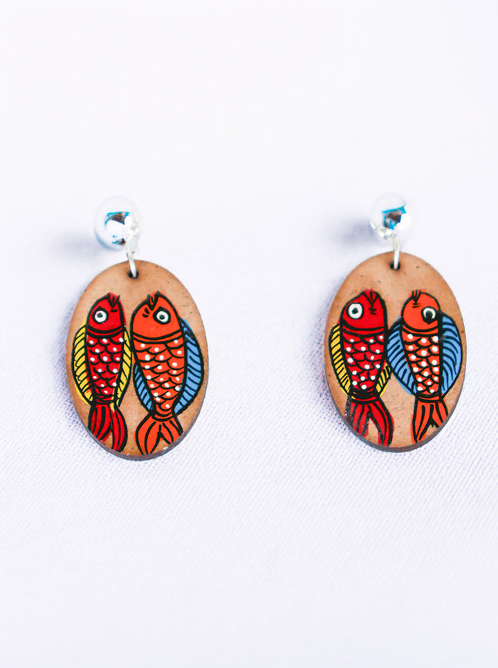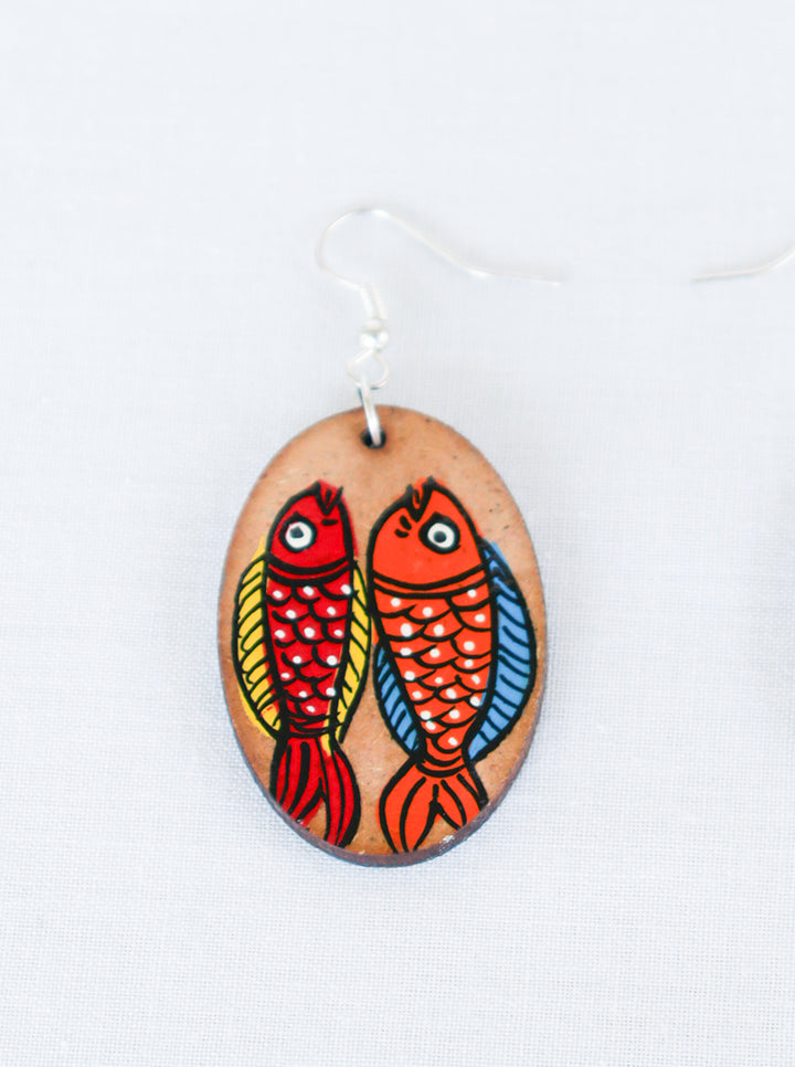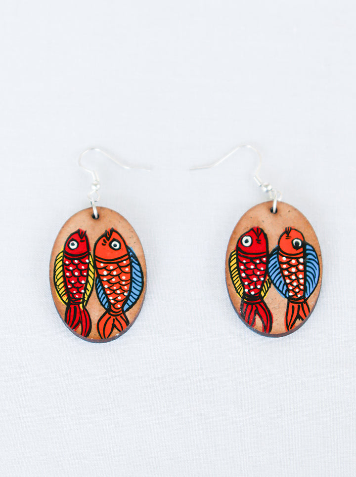 Traditional Art: These earrings showcase the timeless beauty of hand-painted designs, featuring vibrant fish motifs symbolizing prosperity and good luck.