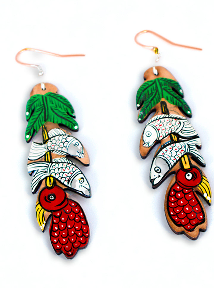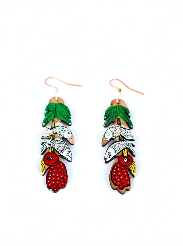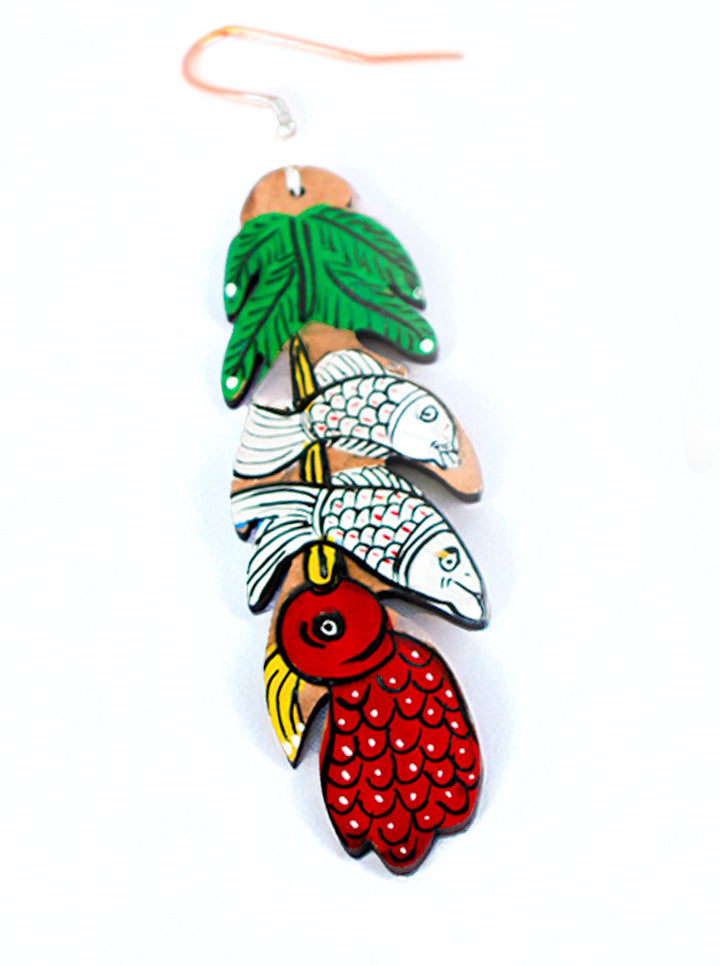 Hand-Painted Fish & Leaf Earrings