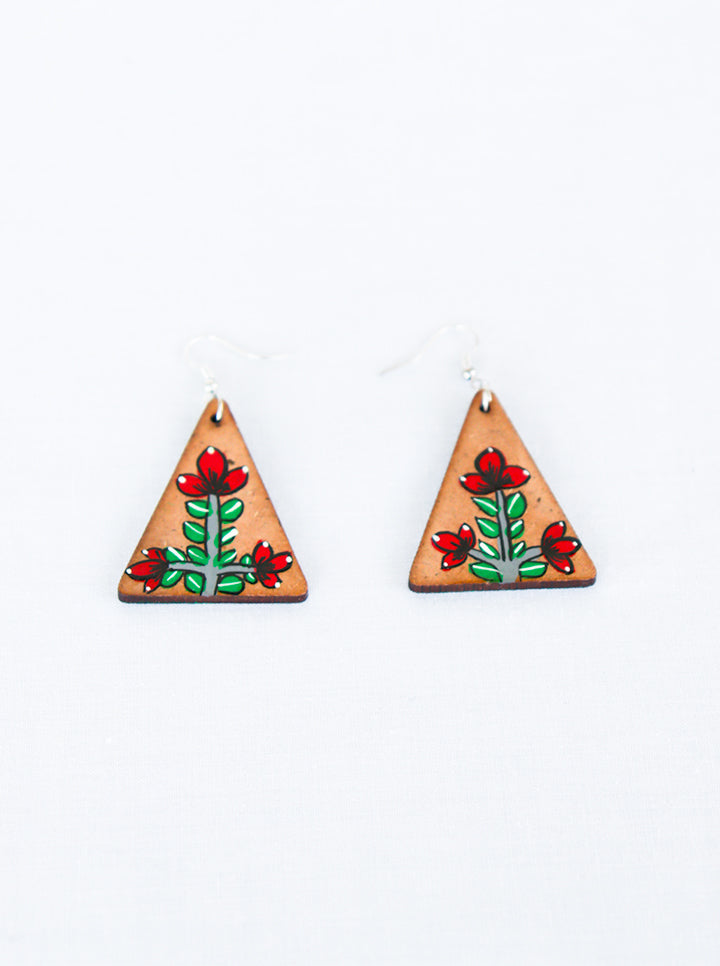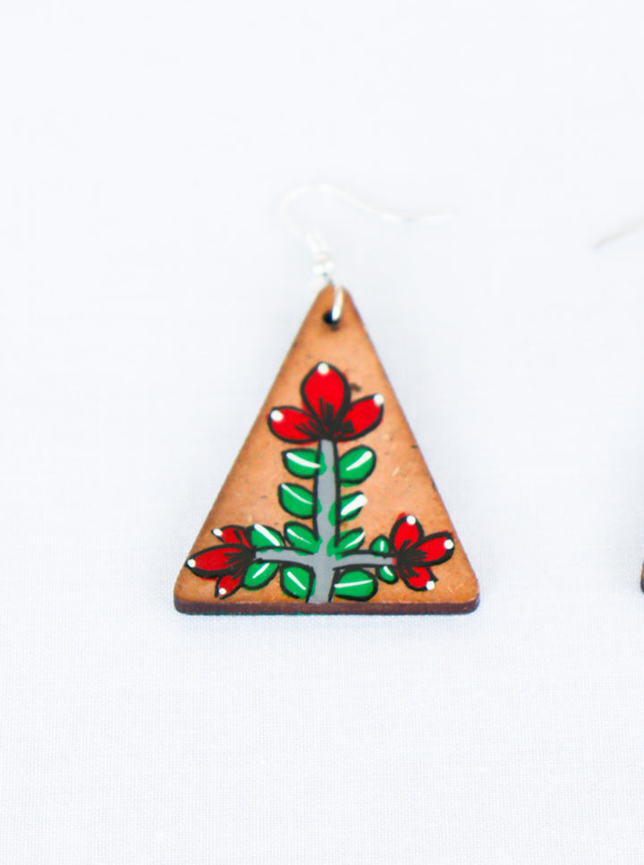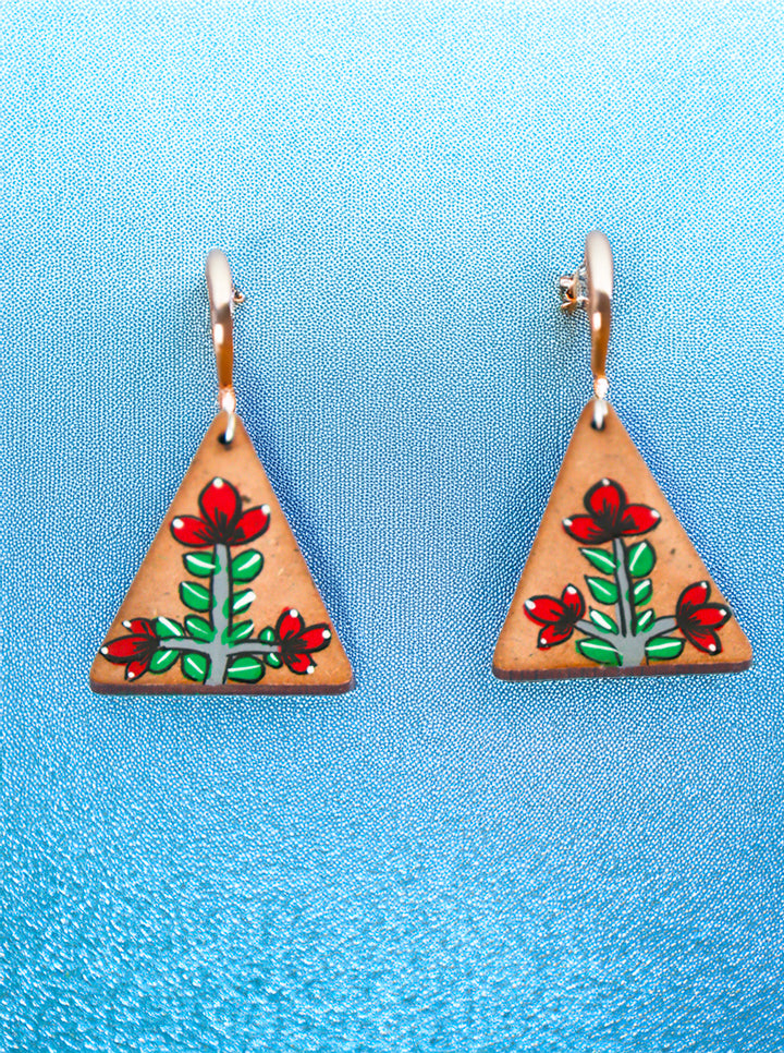 Bold & Artistic Design: Featuring a beautiful hand-painted floral motif, these triangular earrings add a unique touch to any outfit.