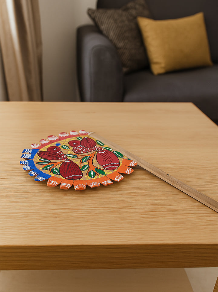 Celebrate the beauty of traditional Indian craftsmanship with this exquisite hand-painted bamboo hand fan. Adorned with intricate Pattachitra bird art, this fan is a perfect blend of cultural heritage and functional elegance.