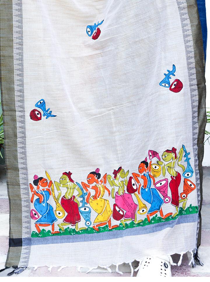 Hand-Painted Pattachitra Dupatta ā Devotional Dance Motif