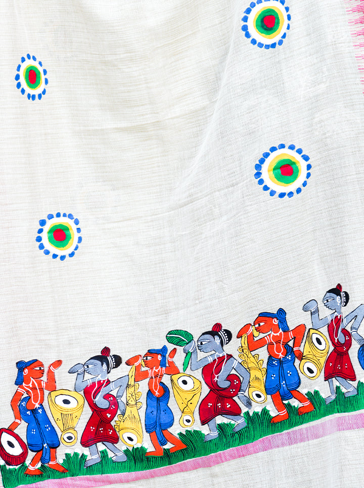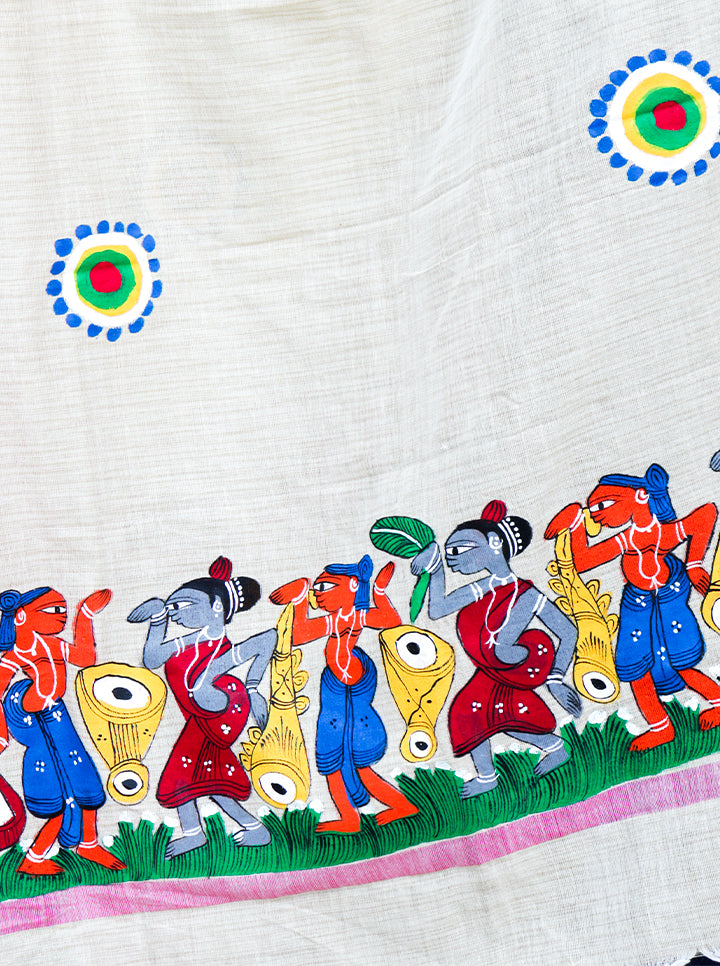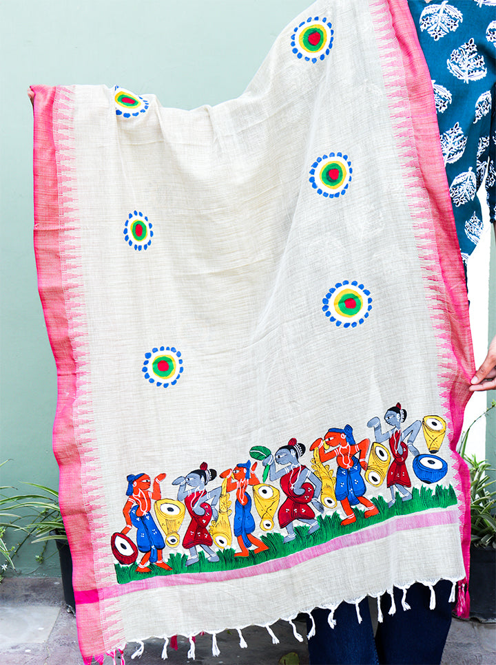 Hand-Painted Pattachitra Dupatta | Traditional Folk Art on Fabric