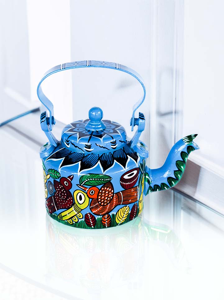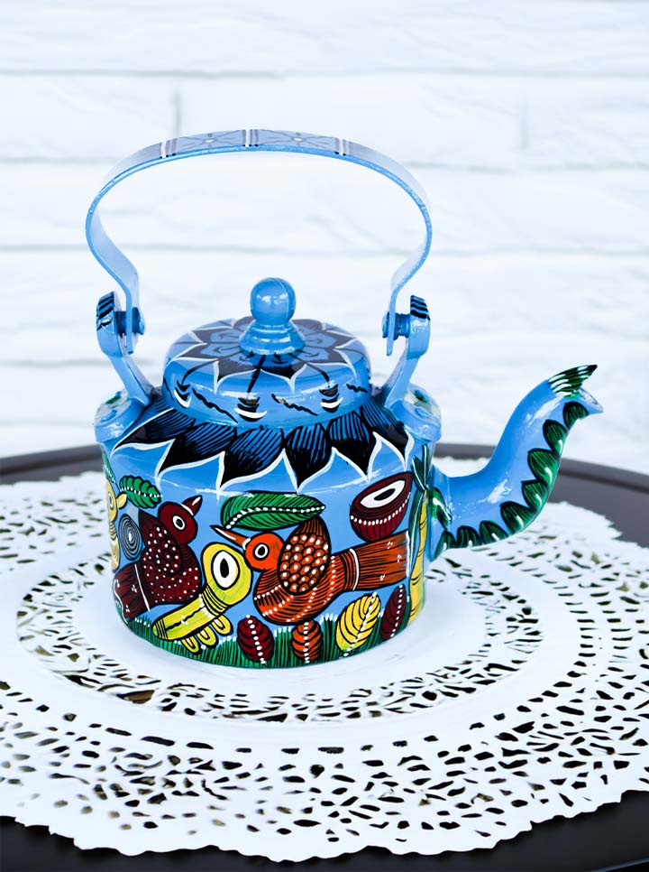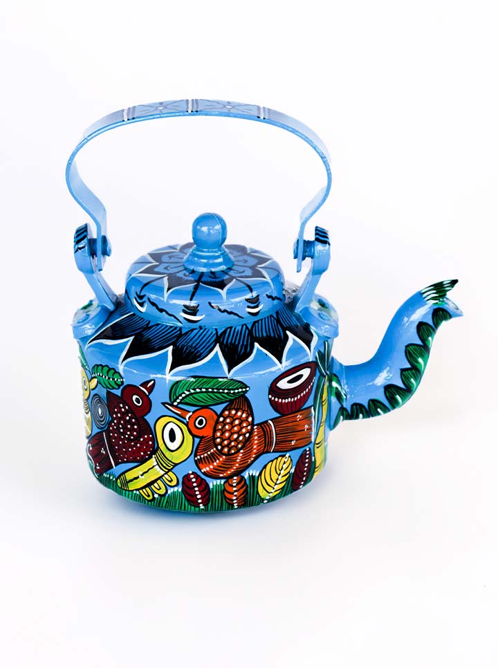 Hand-Painted Bird Pattachitra Kettle β A Fusion of Art & Functionality (Blue)