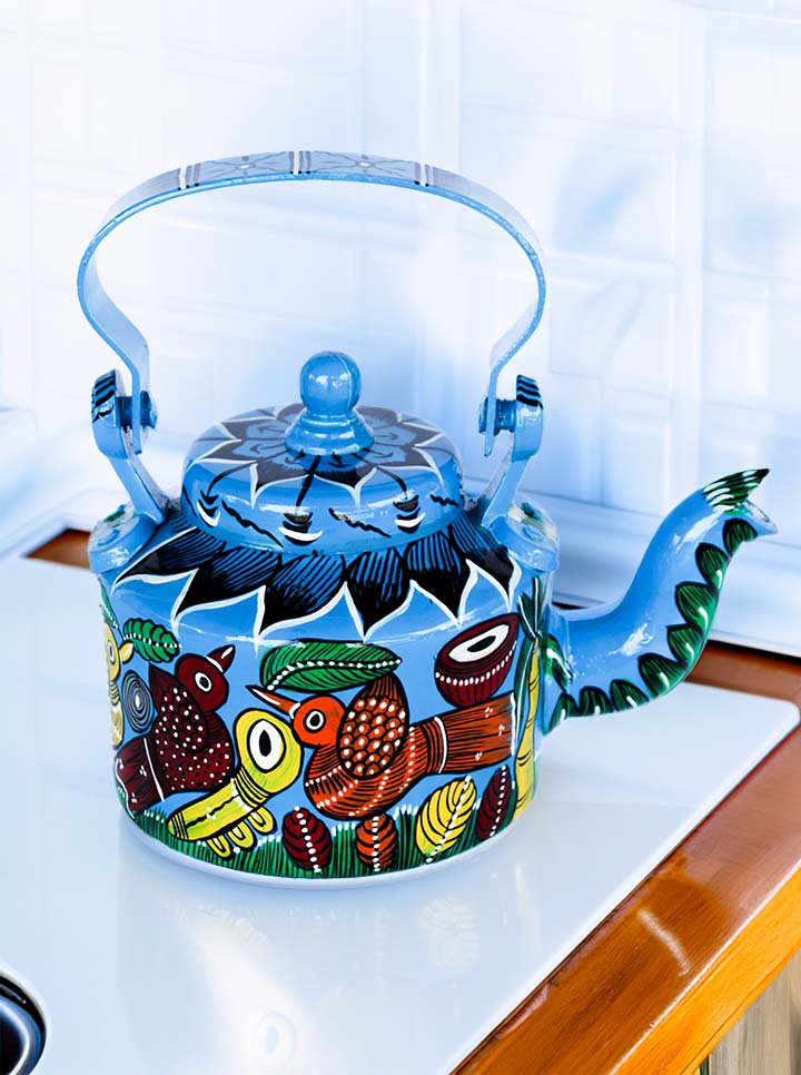 Transform your tea time with this exquisite hand-painted aluminum kettle, featuring authentic Pattachitra artwork from India. This stunning piece is perfect for art lovers, collectors, and those who appreciate traditional craftsmanship.