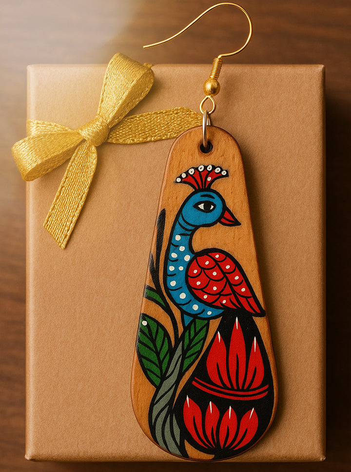 Graceful & Elegant Design: These stunning earrings feature a vibrant hand-painted peacock, symbolizing beauty, confidence, and renewal.