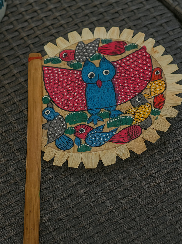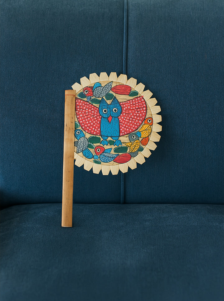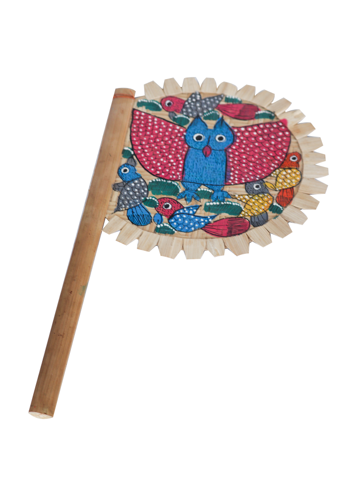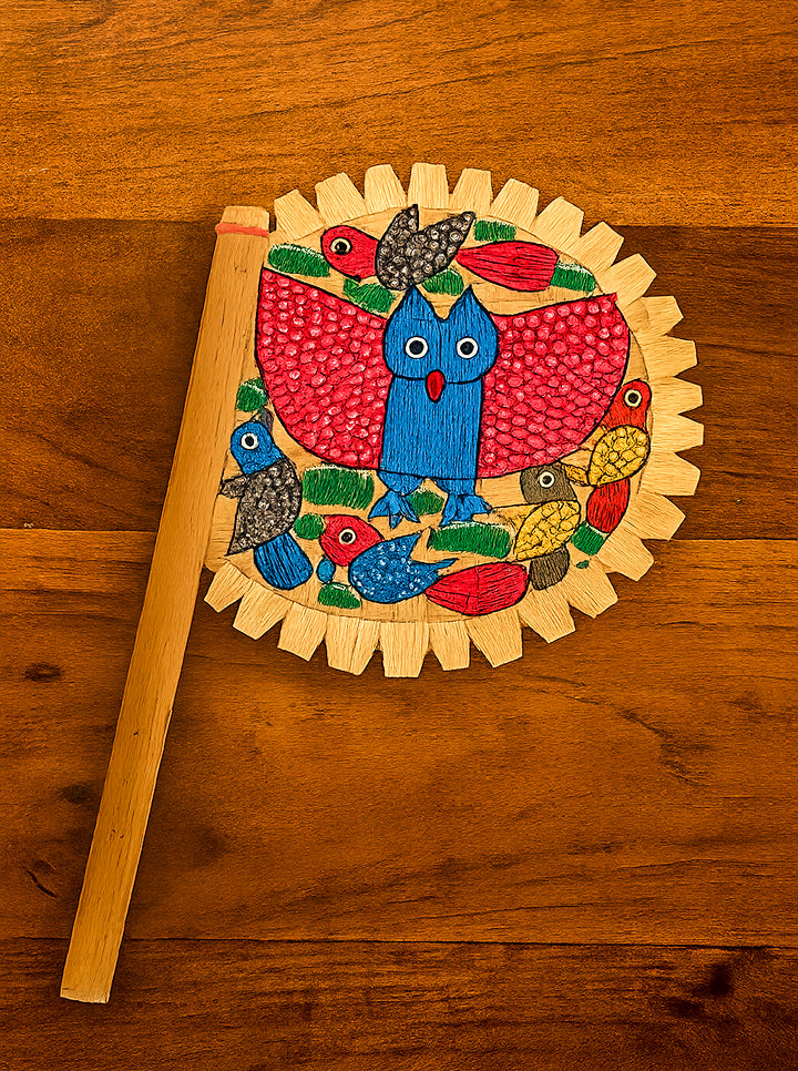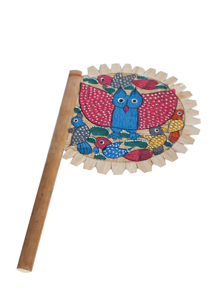 Hand Painted With Traditional Patachitra Motif Hand Fan (Owl and Bird)