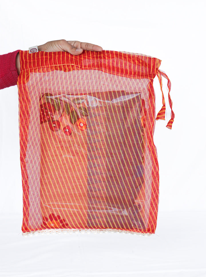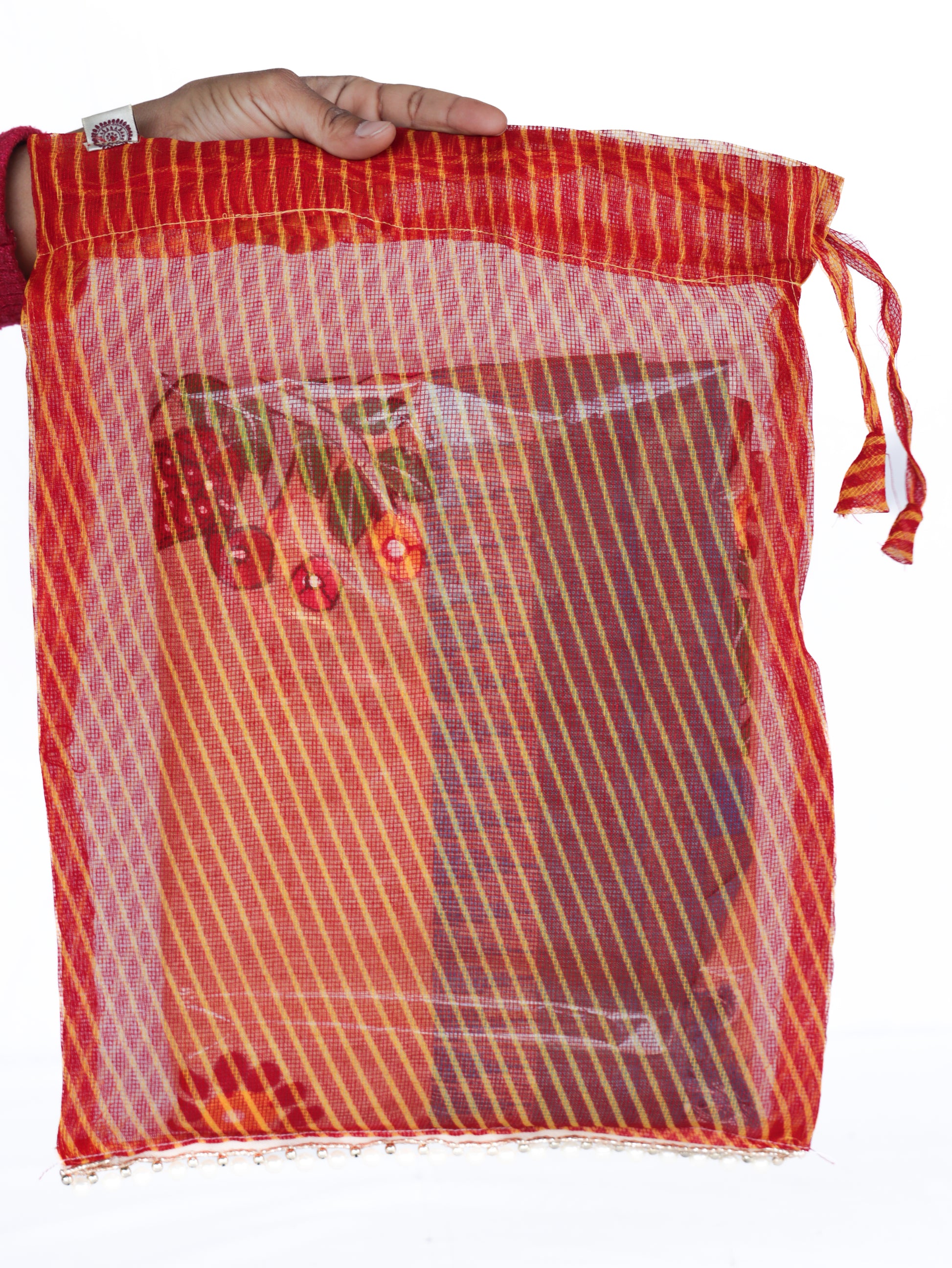 Hand Shagun Gifting Bags With Moti Lace (Red)