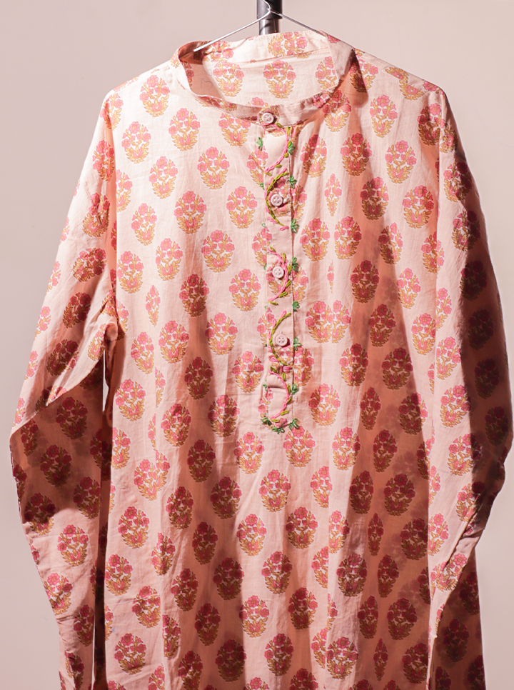 Step into effortless ethnic style with this handblock printed kurti, featuring an intricate floral motif in warm, rustic tones. Made for the modern traditionalist, this kurti blends age-old craftsmanship with contemporary comfort.