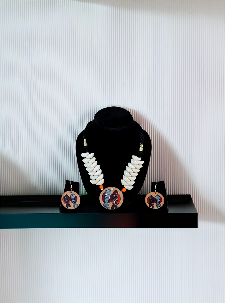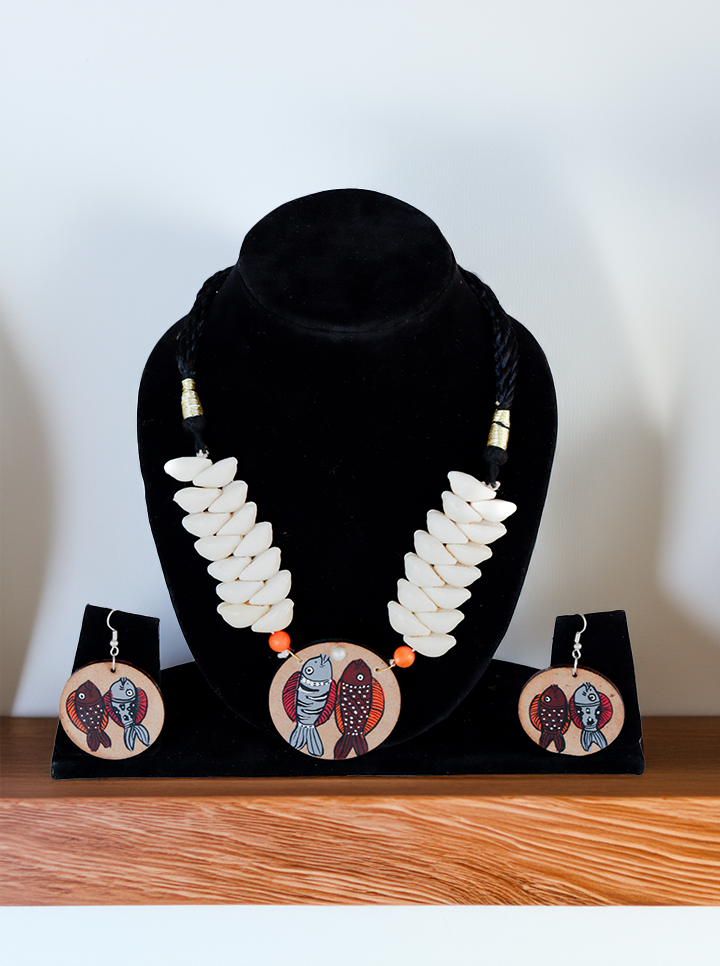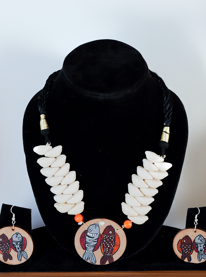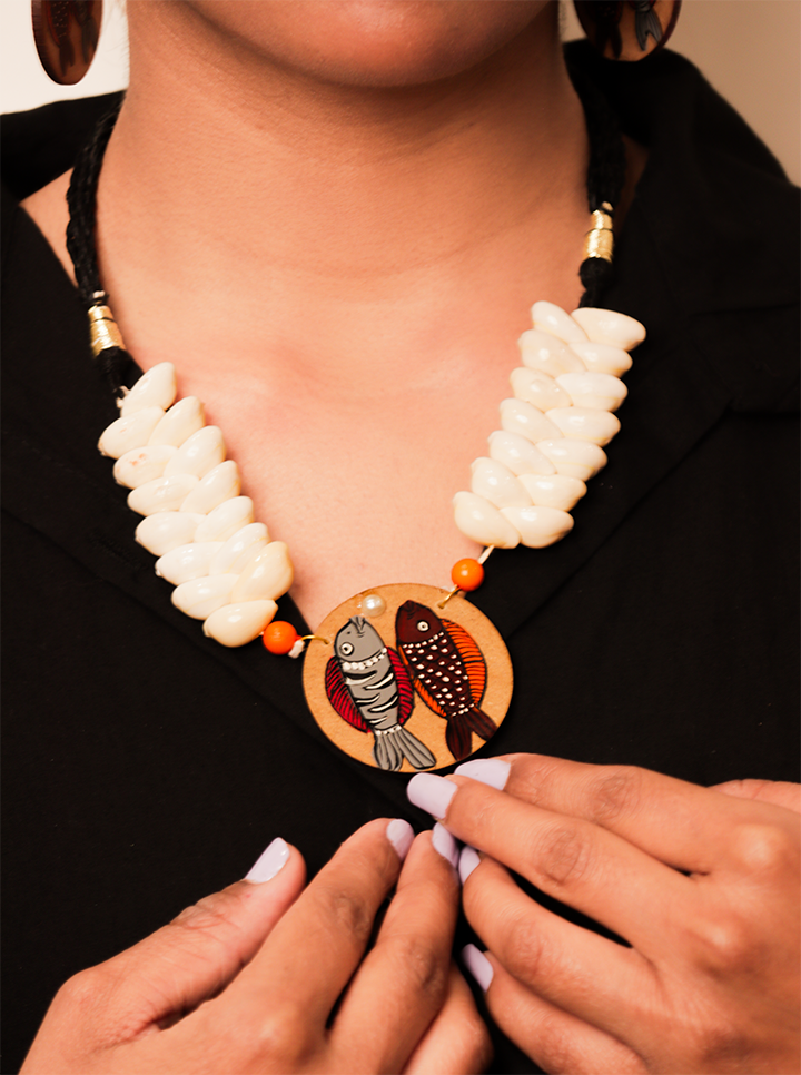 - Material: Hand-painted wooden pendants adorned with classic Pattachitra fish motifs, complemented by natural shell beads and sturdy threadwork.