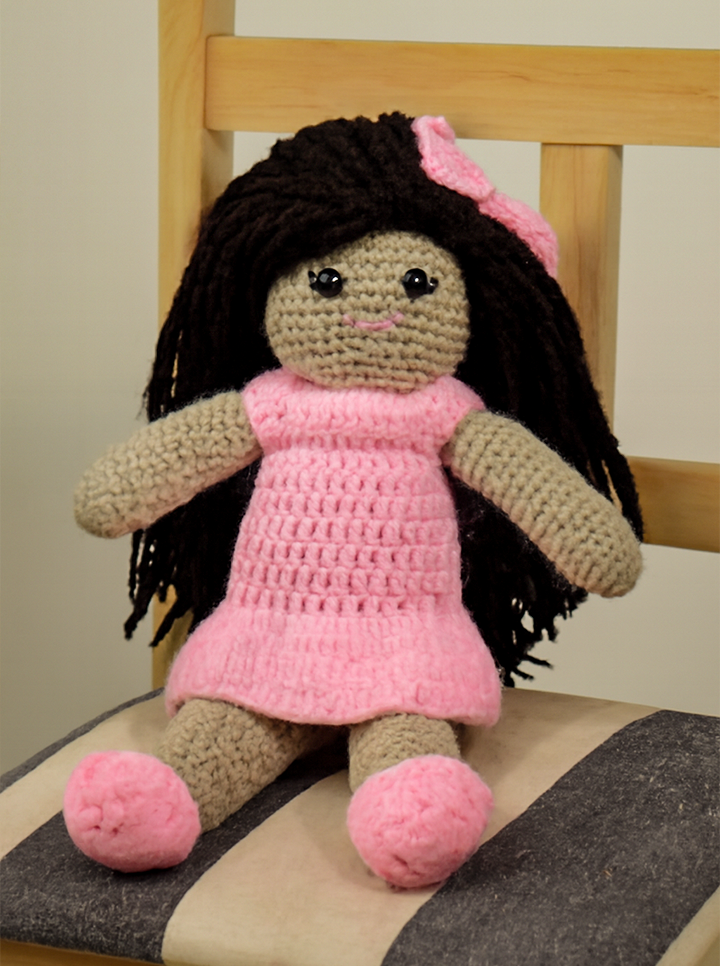 Cute, cuddly, and full of charm — this crochet doll in a lovely pink frock with matching shoes and hair bow is handcrafted with love to brighten hearts of all ages. With soft yarn and a sweet smile, she’s ready to be a little one’s best companion.