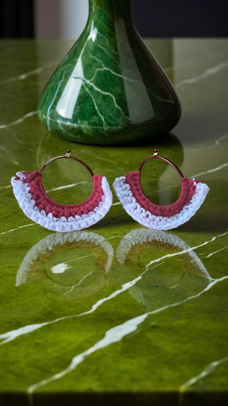 These Handmade Crochet Earrings are a beautiful blend of artistry and elegance. The red and white crochet pattern adds a unique handcrafted charm, while the gold-tone hoop ensures a stylish, lightweight fit.