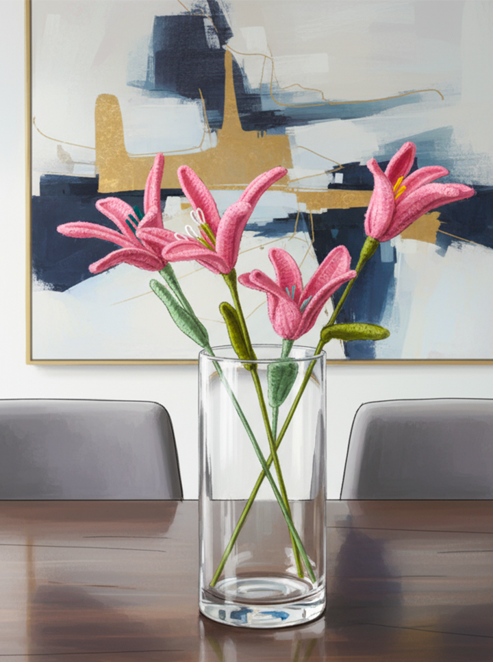 Bring elegance and charm into your space with this beautifully handcrafted onion colour crochet lily. The soft, muted pinkish-onion hue gives it a sophisticated and modern look, making it perfect for home décor, office tables, or gifting. Unlike real flowers, this crochet lily will stay fresh forever, adding timeless beauty wherever placed.