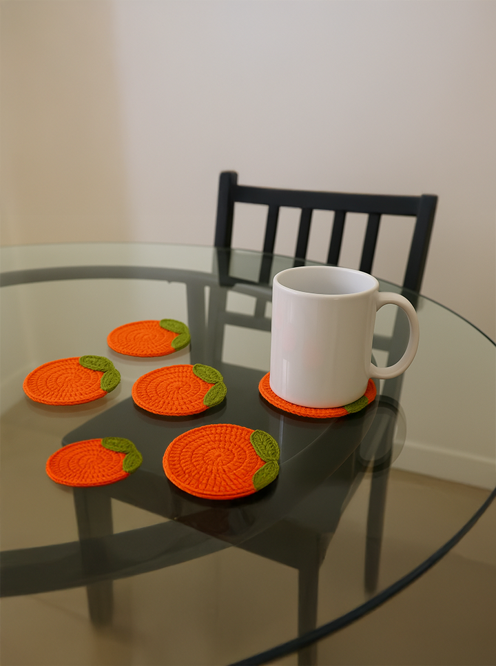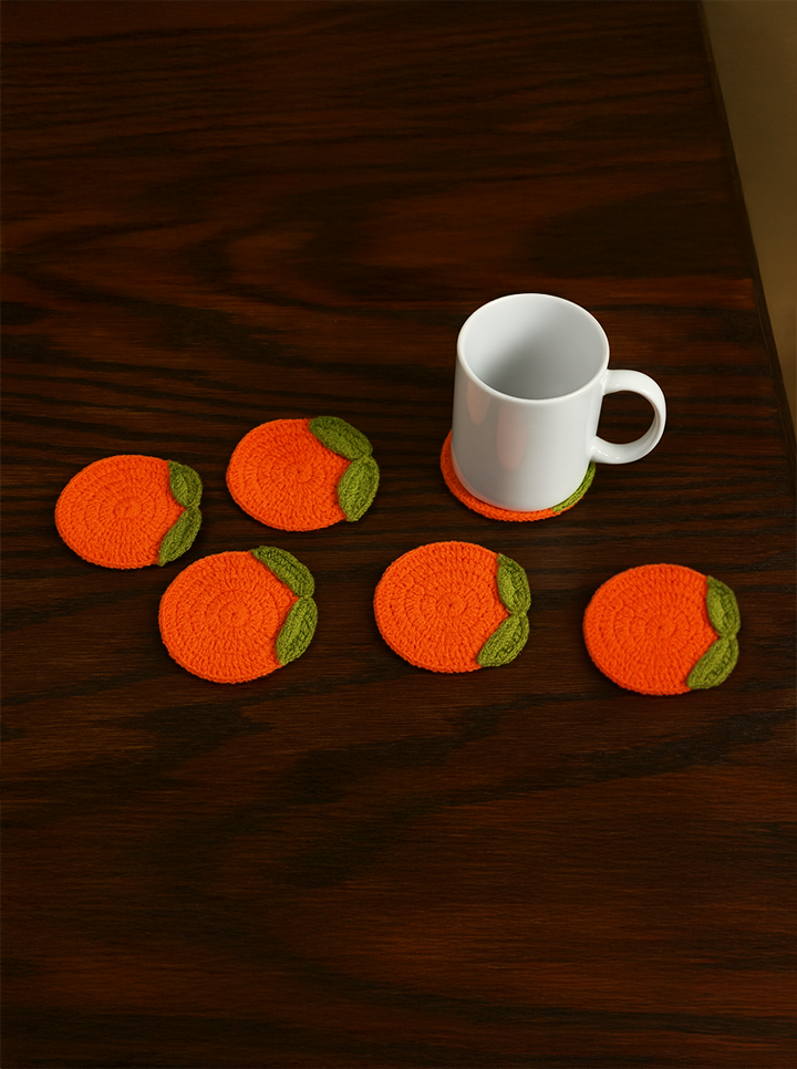 Brighten up your tea time with these fun and fruity crochet orange slice coasters! Designed in a cheerful orange shade with little green leaf details, they bring a refreshing citrus vibe to your table while protecting surfaces from heat and spills. Perfect for everyday use or as a quirky gift.