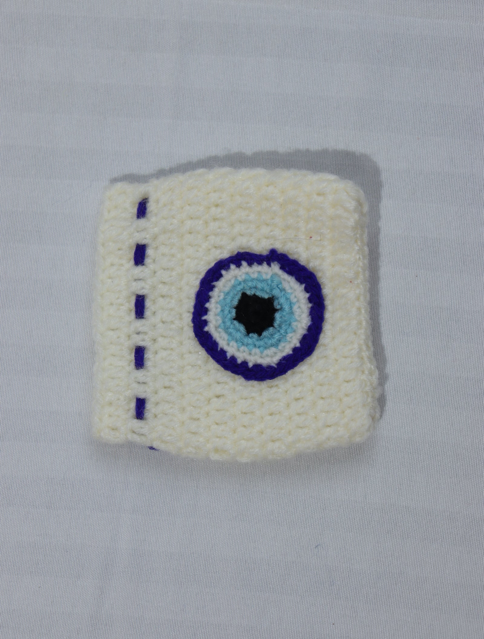 This white crochet pouch features a beautifully stitched evil eye motif symbolizing positivity and protection — perfect to keep your everyday tiny essentials safe and organized.