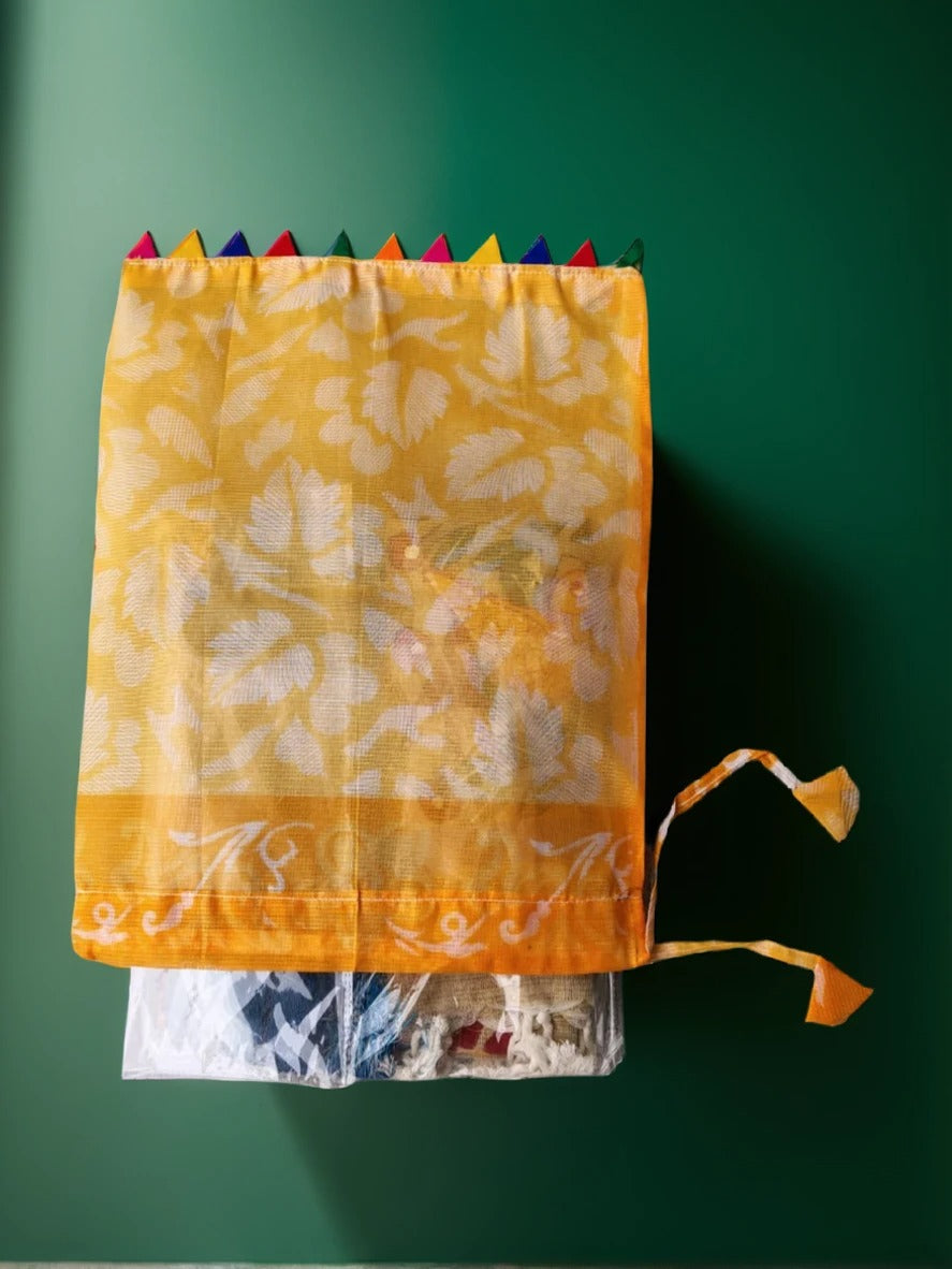 Premium Craftsmanship – Intricately designed with a floral pattern on rich golden-yellow fabric
