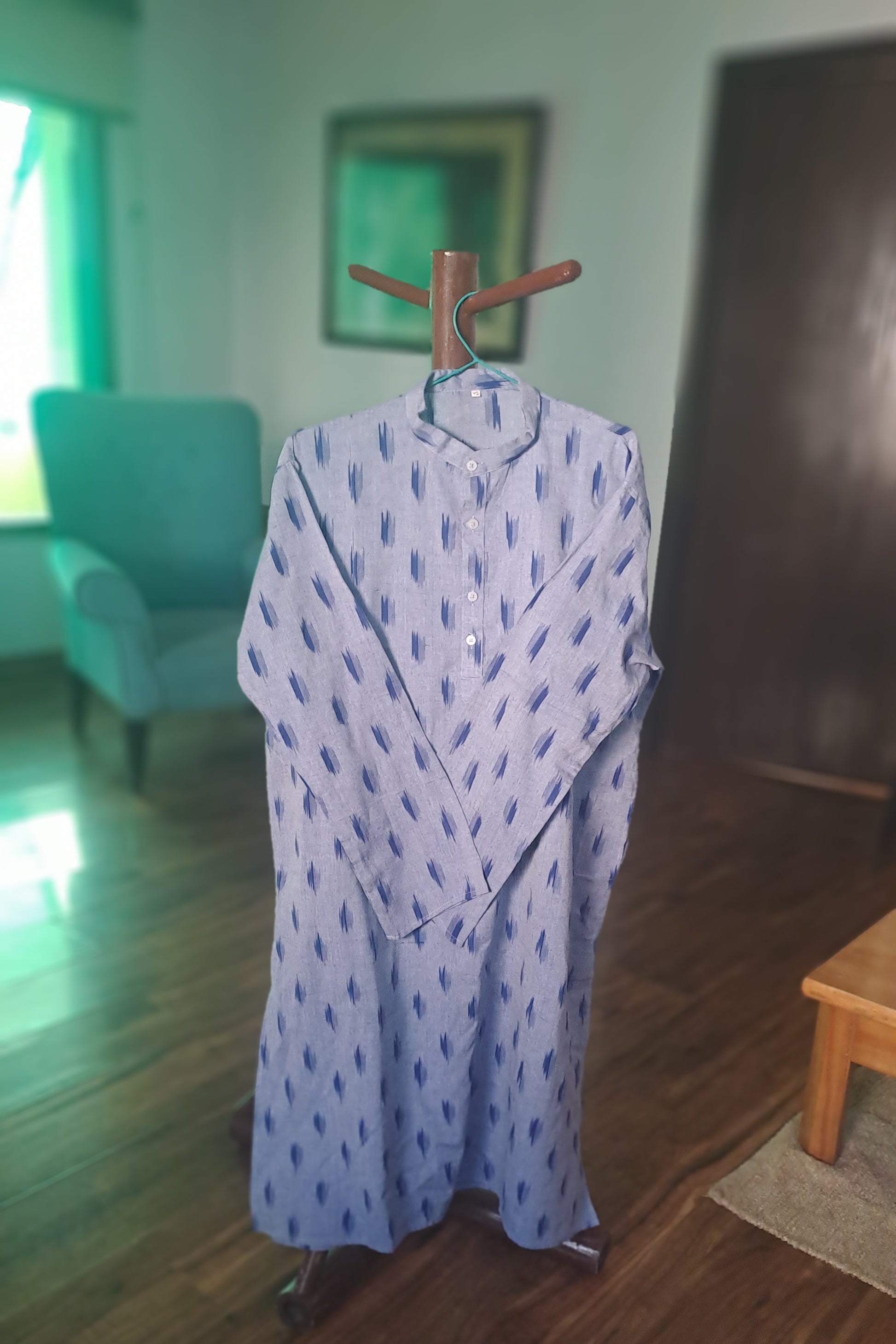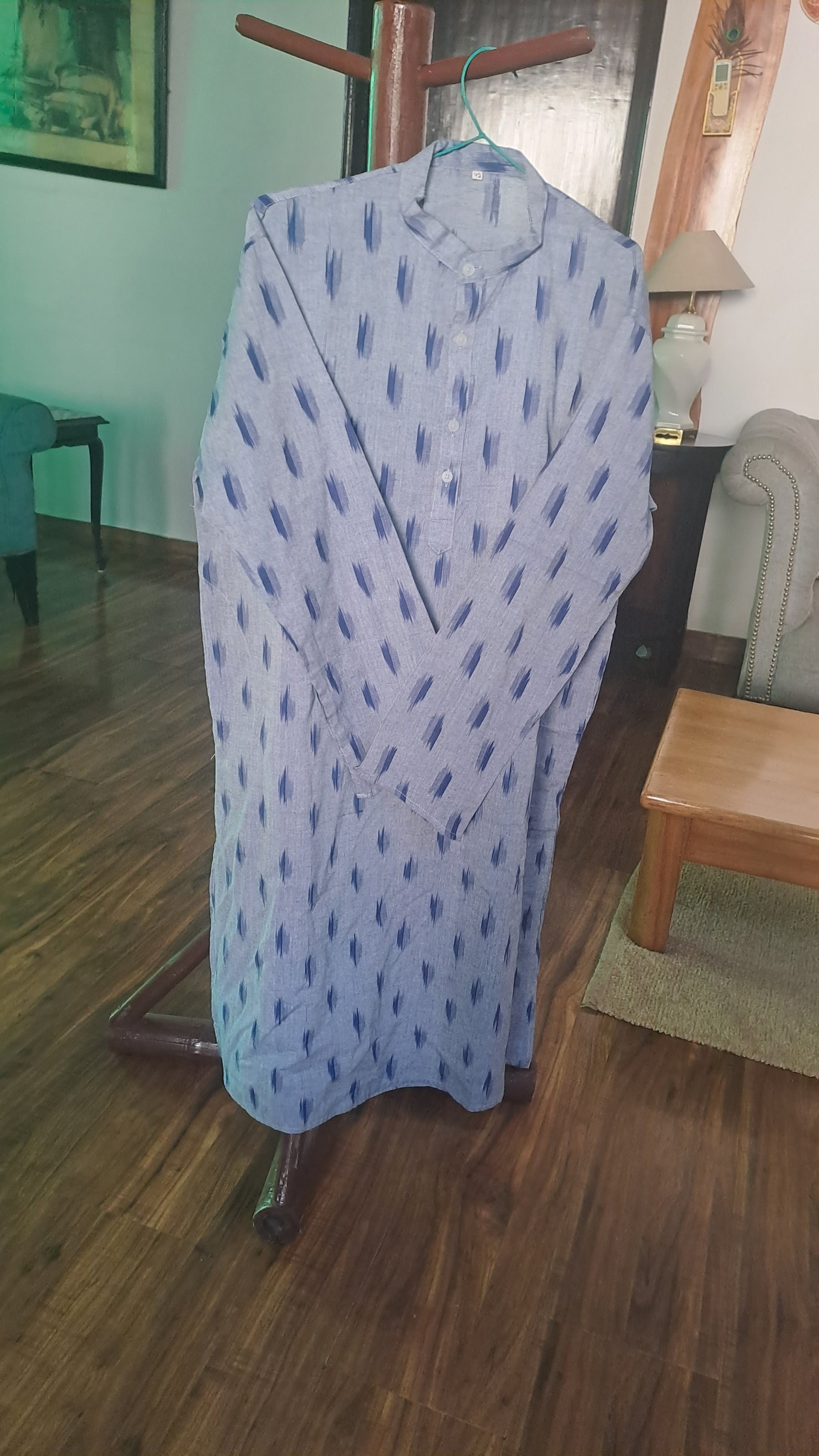 Ikat Cotton Kurta (Light Blue)